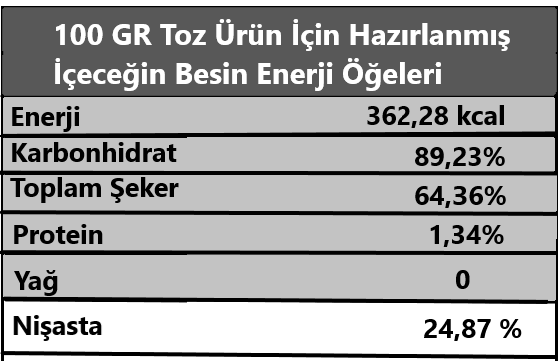 Toz içecek suyla karıştığında içeceğin çok sulu değil, biraz daha dolgun ve yumuşak kıvamda olmasını sağlar. Böylece içecek daha “meyve suyu benzeri” bir his verir.