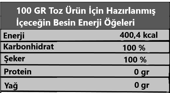 HAZIRLANIŞI: Sıcak içmek için 1 çay bardağı sıcak suya 2-3 çay kaşığı (10gr), soğuk içmek için 1 su bardağı soğuk suya 1 çorba kaşığı (25gr) Altıncezve Tarçın aromalı içecek tozu koyarak karıştırınız.